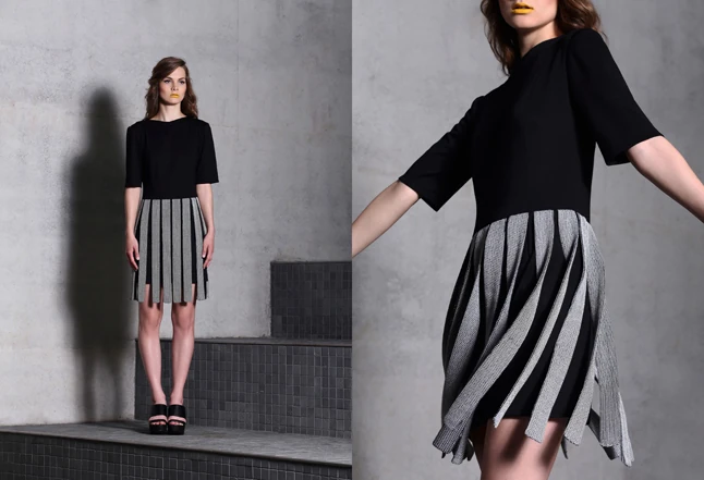A hanghatásokban, zenékben érzékelhető ritmusok hol kisebb, hol nagyobb csíkritmusokban köszönnek vissza a ruhákon, de fel lehet fedezni a zajok leképződését is, például a kézzel kötött betéttel ellátott női felsőkön. Az eddig leírt elemek végül női és férfi kollekcióvá álltak össze.