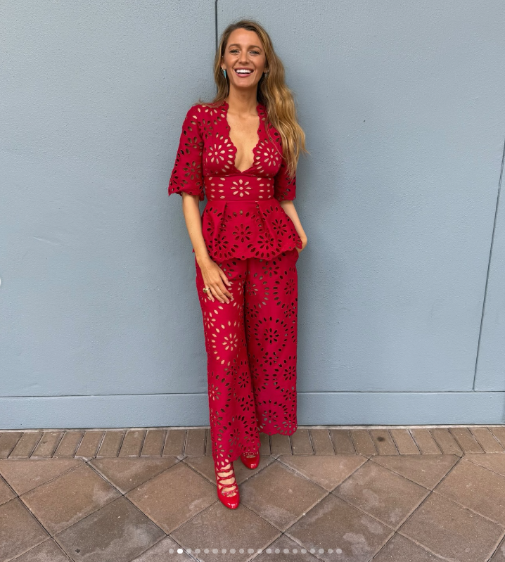 Blake Lively stílusát az elegáns, letisztult és merész darabok jellemzik, továbbá számos alkalommal bebizonyította, hogy az élénk színektől sem riad vissza. Nos, legutóbbi outfitjében ez mind visszaköszön: egy mélyen dekoltált, piros, „lyukacsos” meztelen szettben vett részt egy sajtóeseményen, melyen az italmárkáit (Betty Buzz és Betty Booze) népszerűsítette.