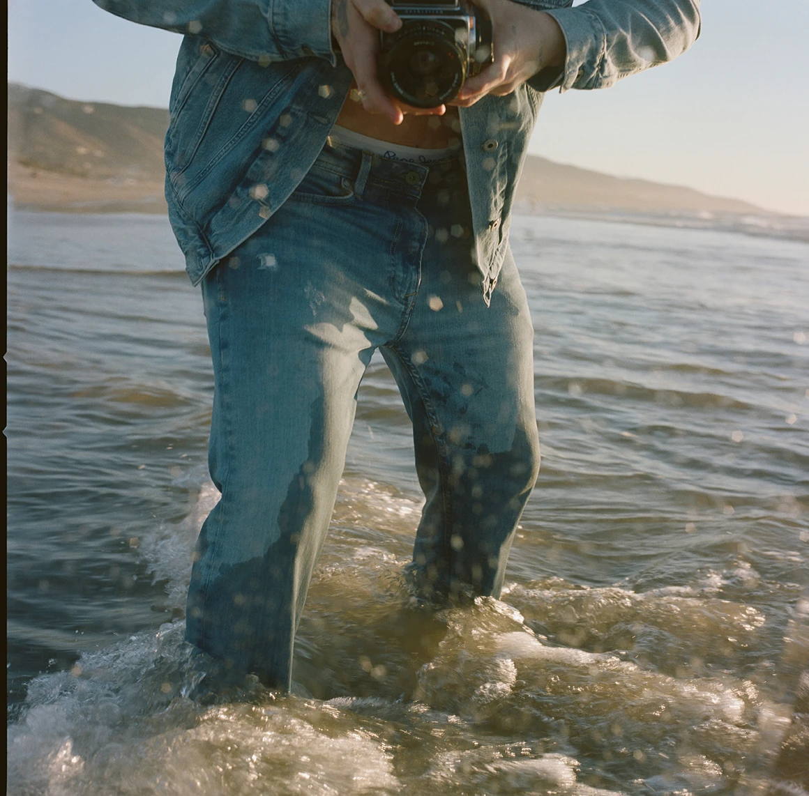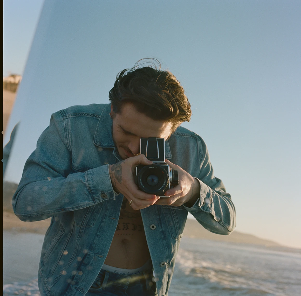 Brooklyn saját magáról készített fotókat egy tükör segítségével a tengerparton a Pepe Jeans London darabjait viselve!