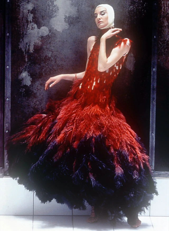 Záródarab, Erin O´Connor ruhája festett orvosi üvegből, és festett strucctollakból készült. "Azt akartam, hogy az állat vére minden egyes darabból visszaköszönjön" - mondta a ruháról McQueen: