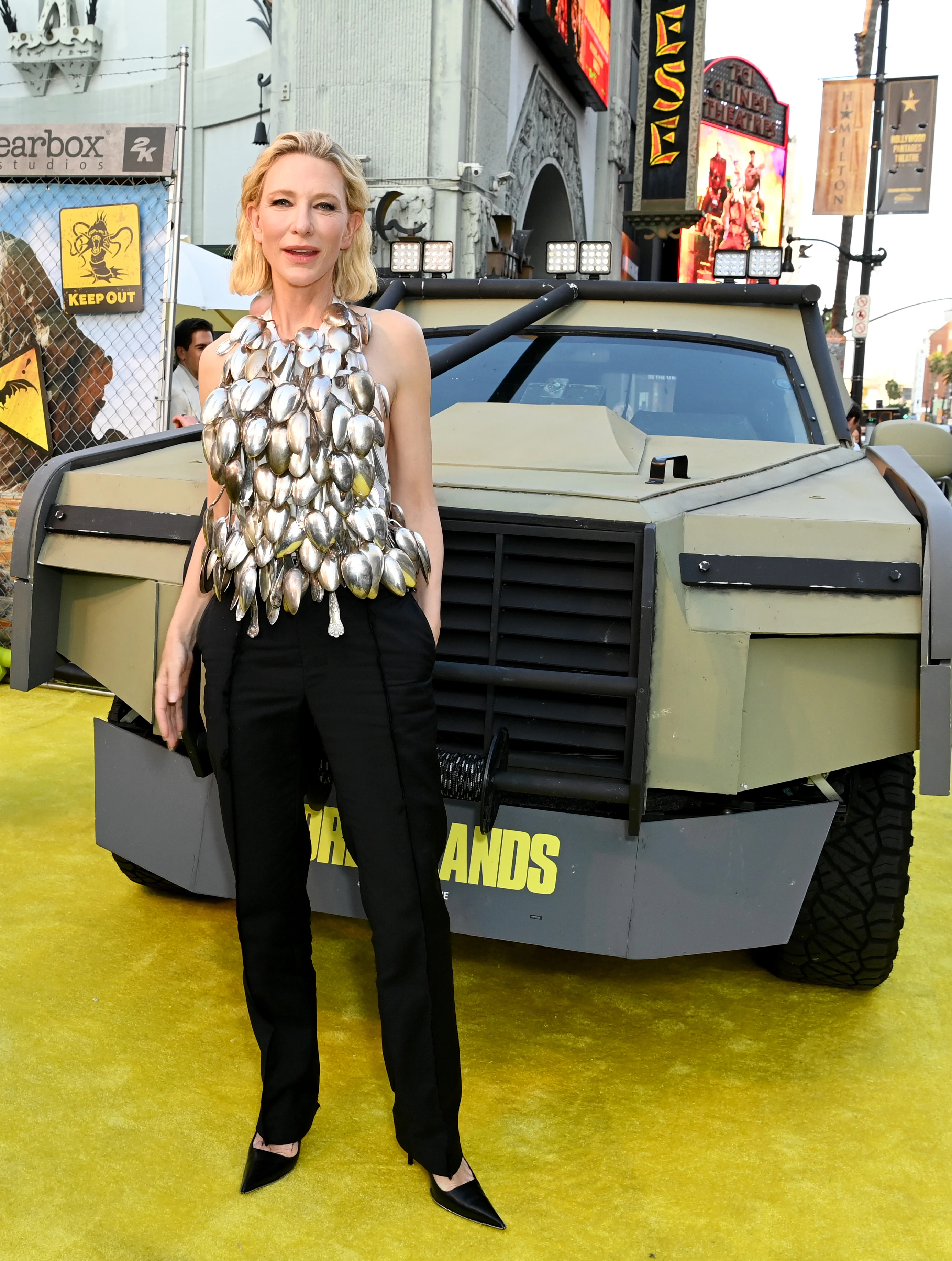 A színésznő új filmjét, a Borderlands című mozit augusztus 8-án mutatták meg, Blanchett pedig egy olyan felsőrészben (gyakorlatilag mellvértben) jelent meg, ami 102 kanálból áll. A különleges alkotás Ellen Hodakova Larsson svéd dizájner munkája, a kalanalak pedig egytől egyig Stockholmból és környékéről származnak. A megjelenést a színésznő a márka rekonstruált nadrágjával tette igazán különlegessé.