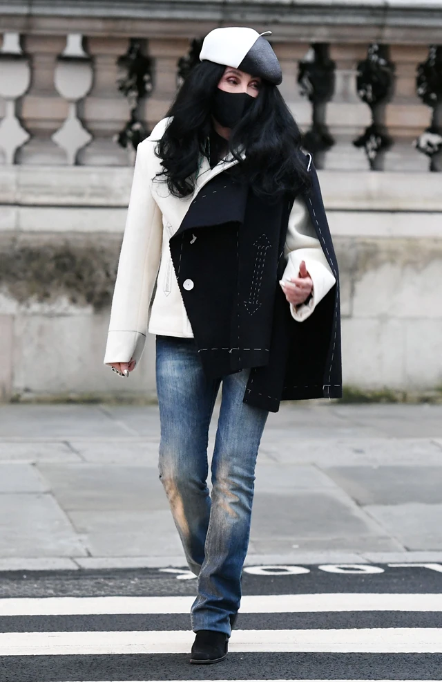 Ez bizonyára Cher sapkájára és kabátjára is igaz, de nem tudjuk nem észrevenni, hogy olyan, mintha Szörnyella de Frász gardróbjából öltözködött volna fel!