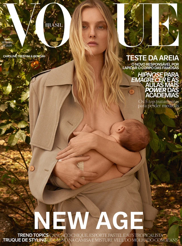 Zee Nunes még óriási pocakkal készített vele a divatanyag első részét, majd nem sokkal szülés után szintén a kamera elé állt Caroline Trentini. A brazil Vogue be is vállalta, hogy a címlapon egy olyan képet szerepeltessen, amelyen szoptatja újszülött kisfiát. Hogy miért kell ezt bevállalni? Hát, legfőképpen azért, mert sajnos ez a nagyon is természetes és szép momentum még mindig képes botrányt okozni. Valahogy sem a média, sem pedig közvélemény egy része nem tartja olyasminek, amit mutogatni illik.