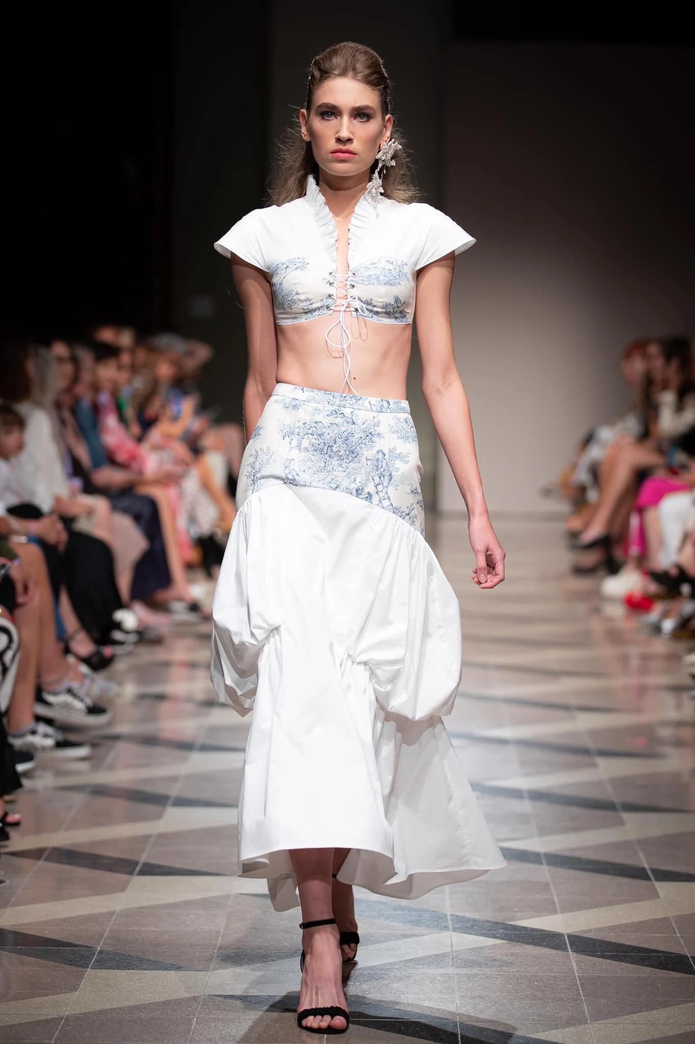 A bemutatott kollekció számos könnyed darabból áll. A kék árnyalatok mellett megjelent a rózsaszín is. A Darja Donezz márka DNS-e a színeken és szimbolikus mintákon alapszik. Az idei kollekcióban visszatérő minta és szimbólum volt a hal, amely különleges történetet hordoz magában. „3 évvel ezelőtt valahonnan beugrott egy kép, hogy a ruha egy hal. Nem tudom miért történt, de elkezdtem a halak szimbólumának utánanézni és az élet kezdetét szimbolizálják. Azóta a “halaim” minden kollekcióban tovább “úsznak”. Amikor a háború elkezdődött, Portugáliába mentem, és mindenhol halakat láttam. Rejtélyes dolog történt az életünkben. A háború előtt pár nappal mutattam meg az új kollekcióm, aminek a főszereplője Venus volt, a Boticelli remekműről, ahogy a lány a kagylóban a partra érkezik. Ez a kollekció egy összekötés a múlt és a jelent között. Ez adott nekem hitet, hogy az élet folytatódik. Nagyon boldog vagyok hogy az életem folytatódhat és hogy a családom biztonságban van. Egyszer mindannyian visszatérünk a hazánkba.” – teszi hozzá Darja Donec.