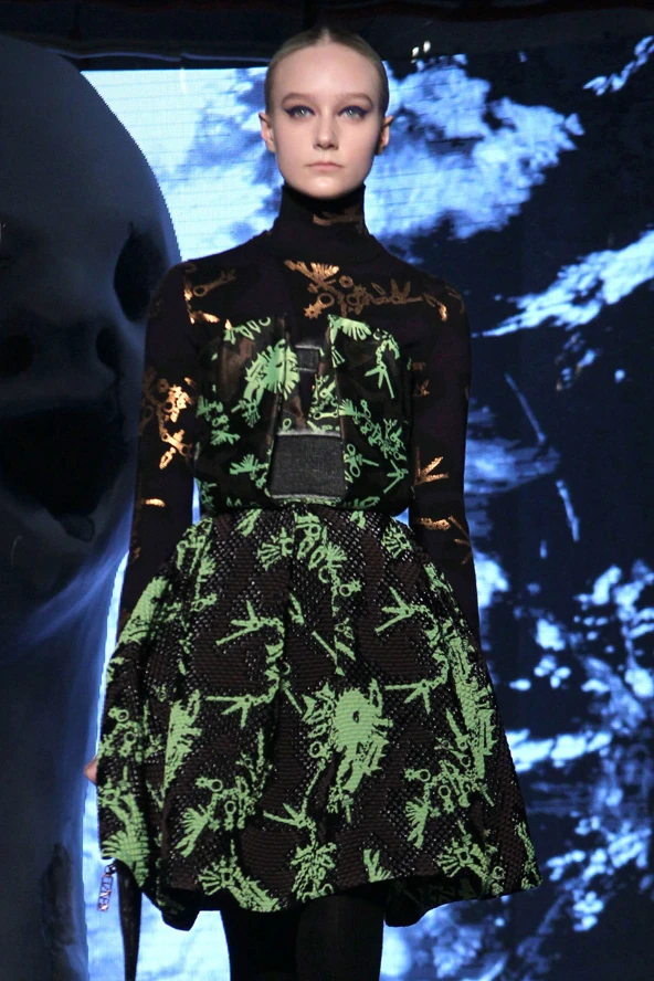 Carol Lim és Humberto Leon, a divatház kreatív vezetői mindig is szokatlan ötletekkel lepnek meg minket, dolgoztak már együtt például a szintén filmes Spike Jonze-zal is. Most az újabban zenészként is aktív David Lynch teremtette meg a rá jellemző, kissé sejtelmes és hátborzongató atmoszférát a show-hoz. Nem is véletlen a felkérés, hiszen a Kenzo kollekciójának jó néhány darabját mi úgy gondoljuk, hogy egy maratoni Twin Peaks szeánsz közben alkotta a páros. Az igazán szürreális mintamixek, szokatlan ráhajtások, furcsa sziluettek tökéletesen beleillenek David Lynch világába.