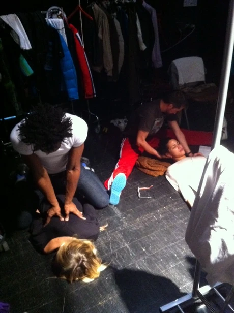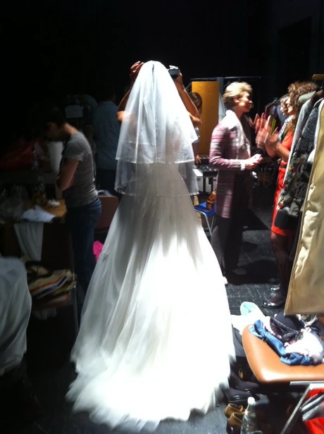 Általában kevesebb mint két perc áll a rendelkezésünkre. Ez a fűzős báli ruháknál igazán nehéz, de ezért vannak annyi segítő kezek a kulisszák mögött. Ketten-hárman tépik? le rólam a ruhákat, amikor visszajövök a kifutóról, és már húzzák is fel rám a következőt. Iszonyatosan nagy a zavar, de a nézők ebből semmit sem vehetnek észre a színpadon.