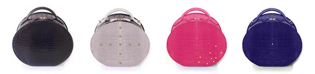 A kedvenc saját tervezésem, és úgy gondolom a minket leginkább jellemző dizájnunk, a kerek Mundu krokodil táska. Minden egyes darab egyéni megrendelésre kézzel készül Milánóban. 40 színben és azok kombinációjaban érhető el, igazgyöngyökkel, nemesfém- és féldrágakő elemekkel díszítjük egyedi kérés szerint. A táska belsejében egy arany plakettbe véssük a tulajdonos nevét, széria kódját és személyes mottóját.