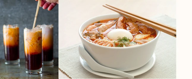 A szingapúri laksa és a thai jegestea tej nélkül. Nem fogyasztok húst és tejtermékeket.
