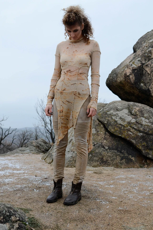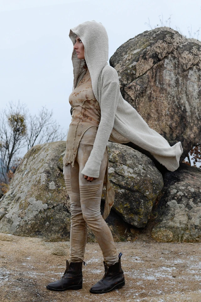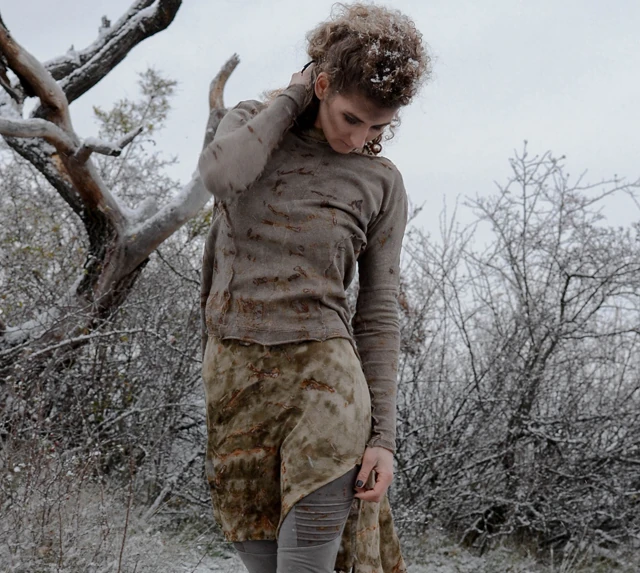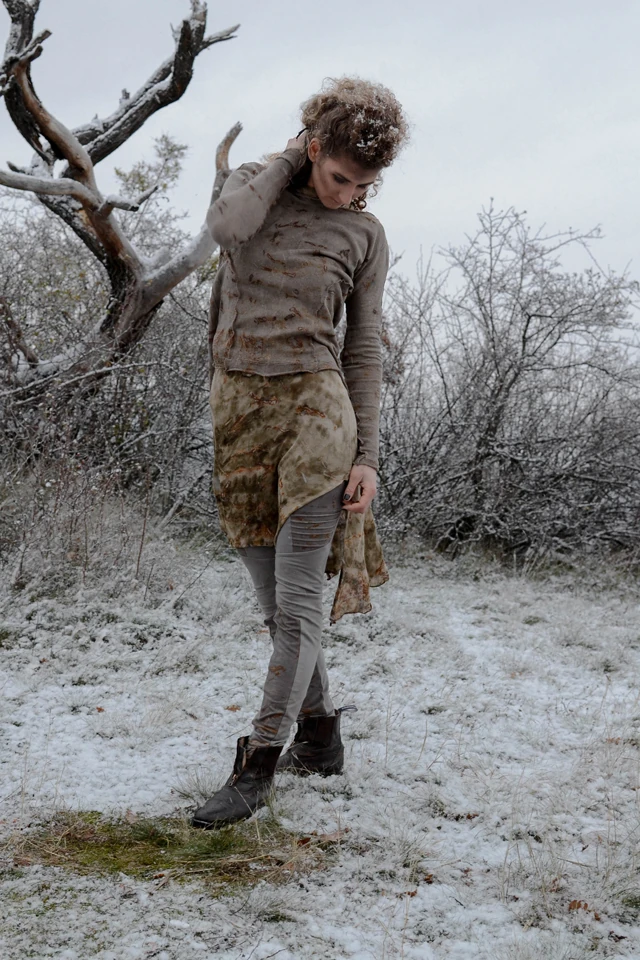 A DORAWYN téli kollekciójában saját kötésű, újrahasznosított pamutból készült anyagok, minősített organikus kender és pamut anyagokból készült minden ruhadarab. Egytől –egyig kézzel festettek, növényekkel vagy környezetbarát festékekkel.