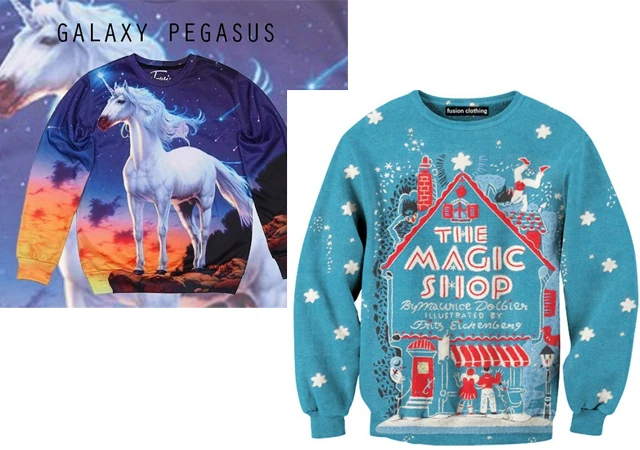 Mindenesetre ha nem egyszer használatos partiviseletet keresel egy turkálóban, akkor van egy tippem neked, ahol szuper digitális printekkel készült pulcsikat találsz. A Fusion Clothing szuper darabjaival biztosan nem futsz össze semelyik buliban.