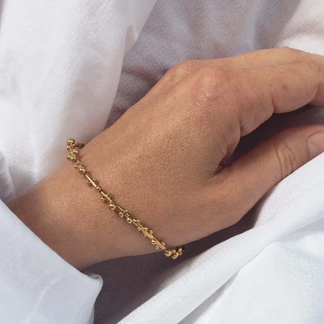 Aktuális kedvencem a legújabb Berry névre keresztelt karkötő, melyet kis olvasztott golyók díszítenek és szerintem egy igazi könnyű kis nyári darab, amihez egyébként egy nagyobb karika fülbevaló is tartozik. Utóbbiak most újra fénykorukat élik.