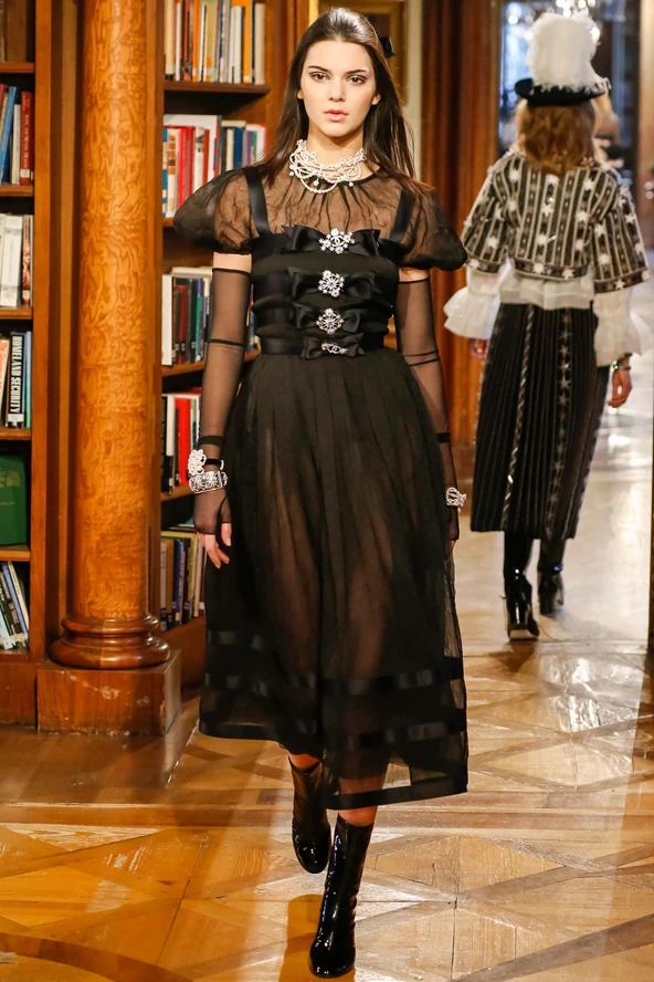 De nemcsak az említett két sztármodell volt ismerős a kifutóul szolgáló palota termeiben: Lindsey Wixson, Lara Stone, Charlotte Free, Edie Campbell és Stella Tennant is büszkén lépkedtek a tiroli kiskalapokban és hosszú csizmákban, a fekete, fehér, kék, piros, illetve a jól ismert osztrák zöldszínű kosztümökben, ruhákban, valamint kabátokban. Majd Cara Delevingne egyik kezében egy félig megevett pereccel, másikkal Karl Lagerfeld kezét fogva vonult végig a palota termein a kollekció menyasszonyi ruhájában, egy fodros, kézzel hímzett, fehér csipkecsodában, amiről nem hiányozhattak a bájos, fekete masnik, mely az egész kollekció meghatározó motívuma volt, ahogy a gazdag osztrák beütés is.