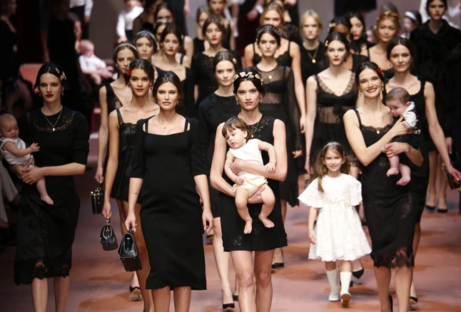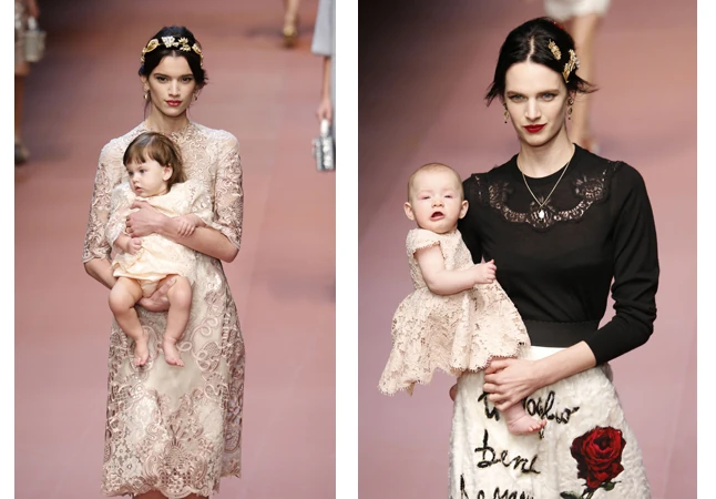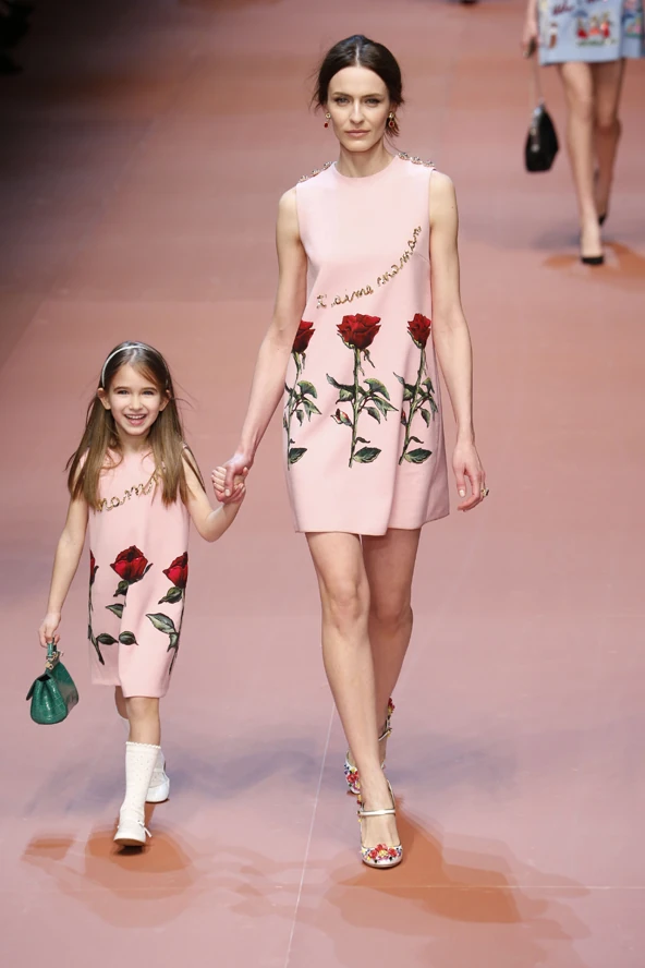 A márka az utóbbi szezonokban újra felfedezte a gyökereit, és látványos, igazi olasz, szícíliai ihletésű kollekciókat álmodtak meg. Ehhez tökéletes körítés volt, hogy a hirdetéseikben a tradicionális olasz nagycsalád, a közösség jelent meg értékként. Most továbbfűzték a gondolatot, és az anyákat ünnepelték a kifutón. Így aztán több modell gyerek kíséretében lépett a kifutóra, volt itt karonülő csecsemőtől nagyobbacska cserfes kislányig több csemete is a kifutón. A kulcsmodell pedig ezúttal is az a Bianca Balti volt, aki már évek óta a Dolce & Gabbana első számú múzsája. A gyönyörű modell éppen várandós, és már igencsak gömbölyödő pocakkal állt a kifutóra.