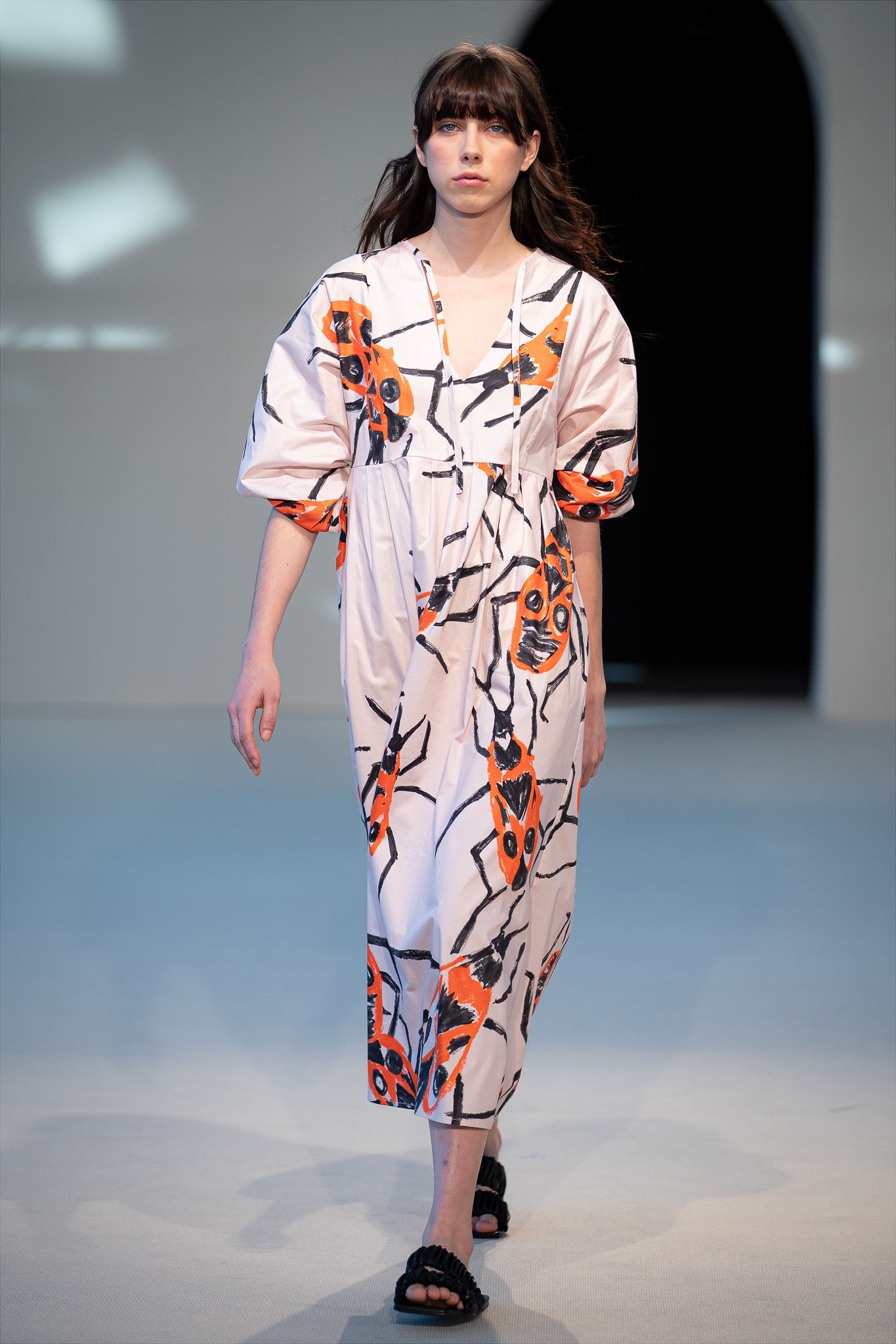 Tomcsányi Dóra vásárlóit eddig is változatos méretű nők alkották, hiszen a tervező eddig is fontosnak tartotta az inkluzivitást. Olyan ingruhákat, gumis derekakat, átlapolható fazonokat, laza overallokat tervez, melyek első látásra felismerhetők az egyedi textilmintáknak köszönhetően is, melyeket az ismert textilművésszel, Balázs Violával közösen alkotnak. Jövő tavasszal és nyáron rengeteg kerekded és sovány, magas és alacsonyabb nőt látunk majd bájos, bogaras kollekciójukban, melynek sztárja többek között a bodobács. Az ökotudatosságot ilyen, művészibb, játékos formában is közelebb lehet hozni az emberekhez, hiszen ahogy a tervező fogalmazott: „Olyan bogarak inspiráltak, amiket az ember nem vesz figyelembe, vagy legszívesebben leütne: szúnyogok, bodobácsok, poloskák, éjjeli lepkék. Ezeket a jelentéktelennek tűnő rovarokat olyan esztétikával jelenítettük meg a textilnyomatokon, hogy az mindenki számára vonzóvá válik.” Ez a kafkai csavar a vonzó és a taszító, az elfogadott és az elutasított értékek között garantálja a sikeres divattervező és alkotótársa egyre nagyobb ismertségét. Ezeket a ruhákat nem lehet nem észre venni!