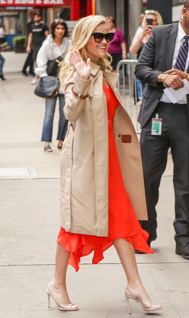 Reese Witherspoon az örök klasszikus Burberry ballonkabátban New York utcáin: