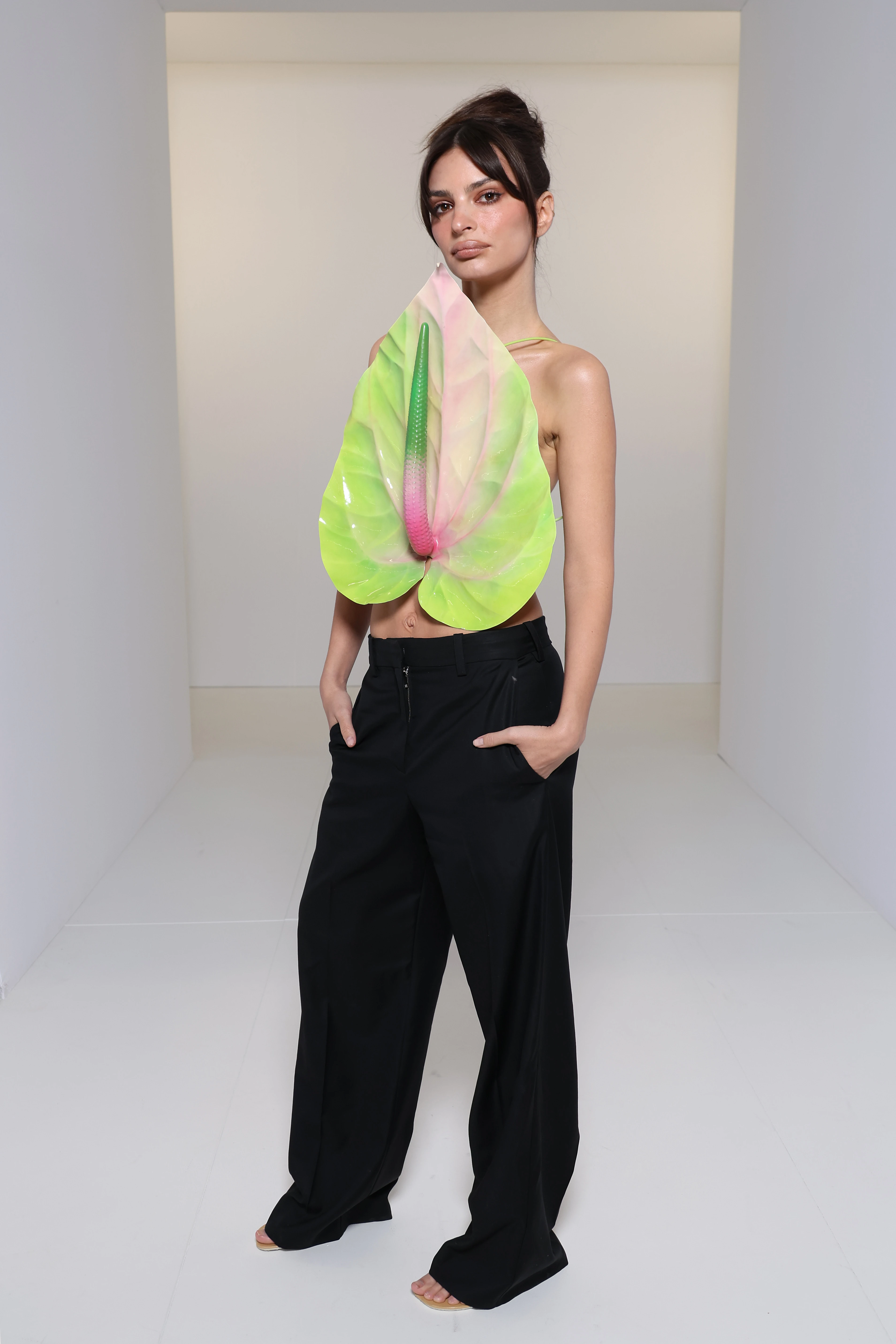 A Loewe 2023-as őszi-téli divatbemutatójának első sorában Emily Ratajkowski meztelen felsőtestét mindössze a márka immár védjegyévé vált hatalmas flamingóvirág takarta. „Szeretem ezt az elképzelést valamiről a természetben, ami hamisnak tűnik, de valóságos – és tetszik az ikonográfiája.” – árulta el korábban Jonathan Anderson, a Loewe kreatív igazgatója a műanyagszerű és enyhén fallikus flamingóvirág inspirációja kapcsán.