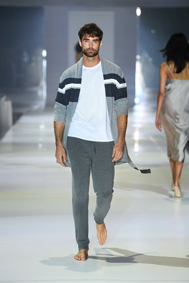 A gyönyörű női modelleket a férfiak követték, akik az Intimissimi Uomo darabjait mutatták be. Klasszikus stílusú egyszínű vagy elegáns motívumokkal díszített pizsamák, köntösök, kényelmes és sikkes nadrágok mutatkoztak be különböző anyagösszetétellel, amiket otthoni viseletre terveztek.