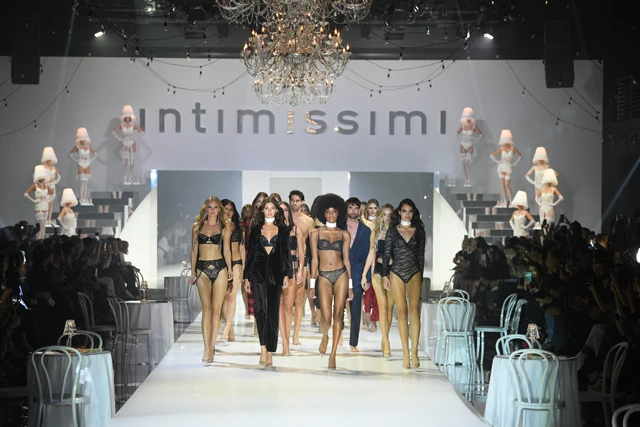 Ez az Intimissimi White Cabaret. Fények mindenütt, hatalmas csillárok drámai kristály részletekkel és a café chantant stílus, amik meghatározták a kifutó hangulatát. Az élményt a közönség számára csak még inkább fokozták a látványos művészi előadások, a táncosok és artisták egyedi produkcióval készültek az eseményre, magával ragadó mutatványokat adtak elő, csodálatos élőképeket alkotva ezzel.