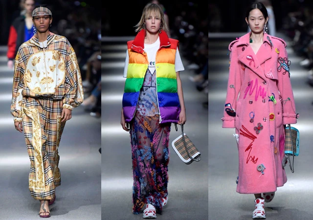 Ezenfelül a mintahalmozások jellemzik a leginkább a kollekciót, a Burberry-kocka megjelenik melegítő felsőkön is. Bailey úgy távozott, hogy a kisebbségeket, a munkásosztályt a hátrahagyottakat is a márka a keblére ölelte. A kifutóra visszatért a márka abszolút kedvenc modellje, Cara Delevingne, aki egy döbbenetes záródarabban vonult fel. A földig érő, szivárványszínű, belül Burberry-kockás kabát pontosan ezt a szemlélelet reprezentálta, és nem véletlen, hogy éppen a nyíltan a leszbikus sztármodell és színésznő viselte a szimbolikus kulcsdarabot.