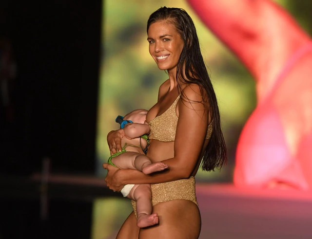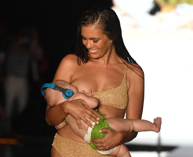 Ez óriási! Újszülött gyerekét szoptatta a kifutón a bikinimodell