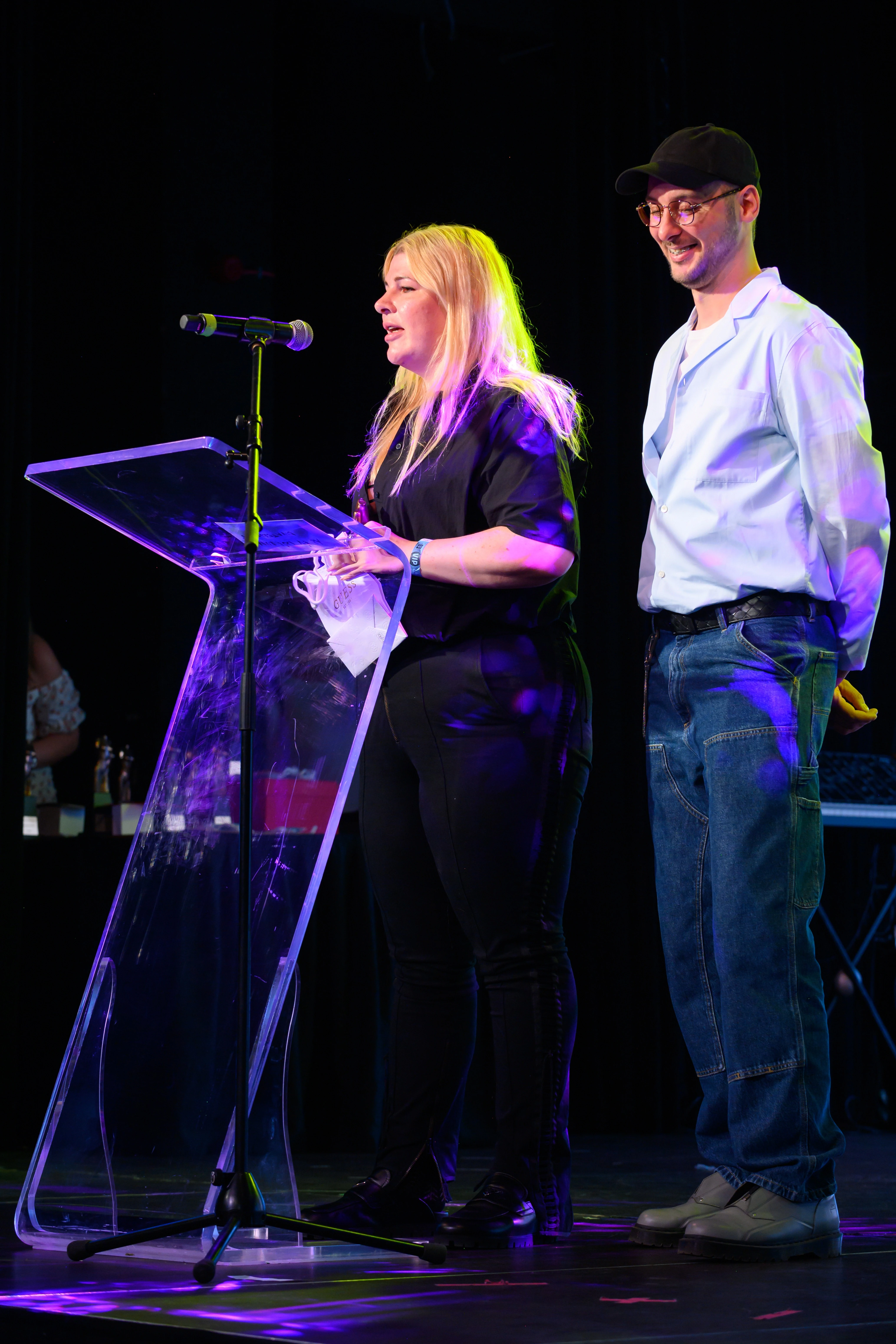 A díjat átadta: Dallos Bogi énekesnő, dalszerző és Rácz Gergő énekes, zeneszerző