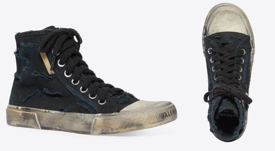 A márka nemrég kezdte el felvenni az előjegyzést a webshopjában a Paris nevet viselő sneakerkollekciójára. A kulcsdarabok pedig a klasszikus magas szárú tornacipők teljesen széthordott, szétroncsolt változatai. A Balenciaga cipői úgy néznek, mintha valaki Párizs-Dakar ralit teljesítette volna bennük gyalog és rögtön oda-vissza. Talán mindez nem lett volna elég, hogy a hírekben felkapják a divattárgyat, de az árával együtt már tényleg sokkoló luxustermékről beszélünk.
