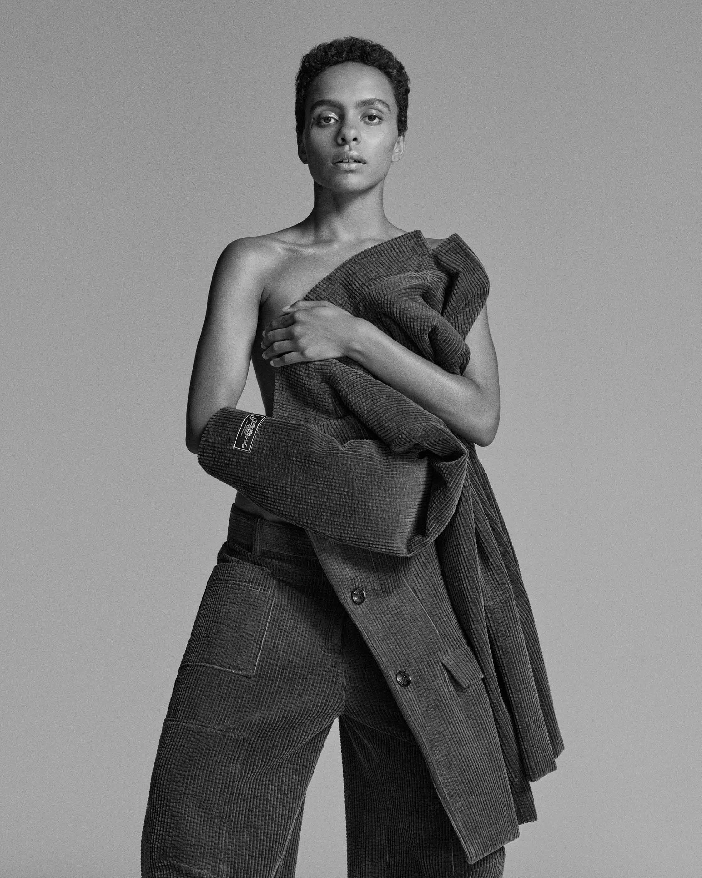 A ruhadarabok a GANNI jól ismert, skandináv minimalizmusát ötvözik merész, maximalista megoldásokkal. A volumetrikus kabátok, aszimmetrikus öltönyök, puha rétegek és kézzel készített kötött darabok mind egy olyan világról mesélnek, ahol a divat nem csupán öltözködés, hanem önkifejezés és közösségteremtés is. A fény és árnyék játéka minden darabot új perspektívába helyez, ezzel is erősítve a kollekció művészi jellegét.