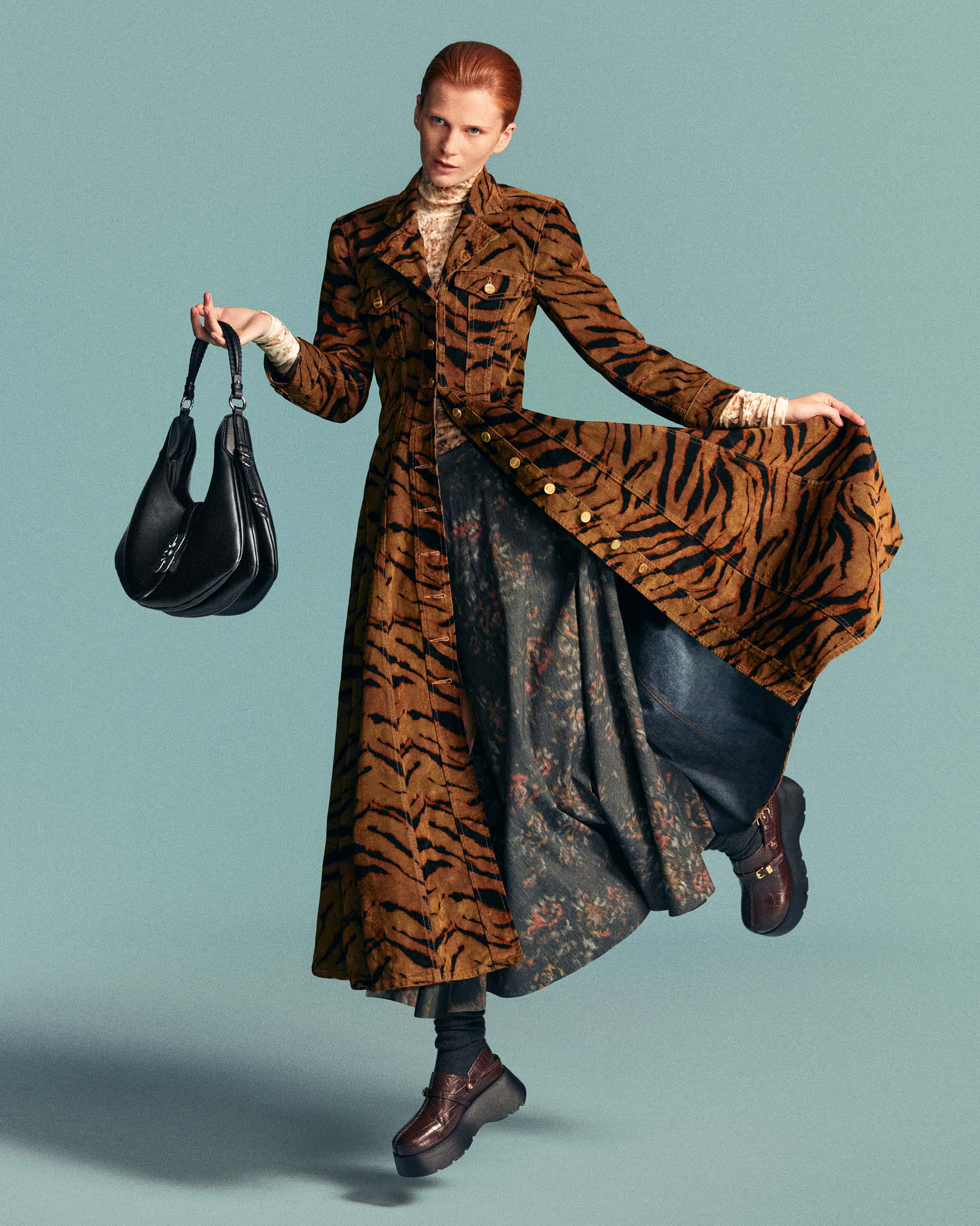 A szezon egyik legizgalmasabb újdonsága a Kat Bag, egy skulpturális formájú, kézzel készített váll- és kézitáska, amely a ’90-es évek laza, mégis magabiztos stílusát idézi. A táska puha, újrahasznosított bőrből készült, és már most a szezon egyik kulcsdarabjának számít. A kollekció szövetválasztása és díszítése is a kontrasztokra épül.