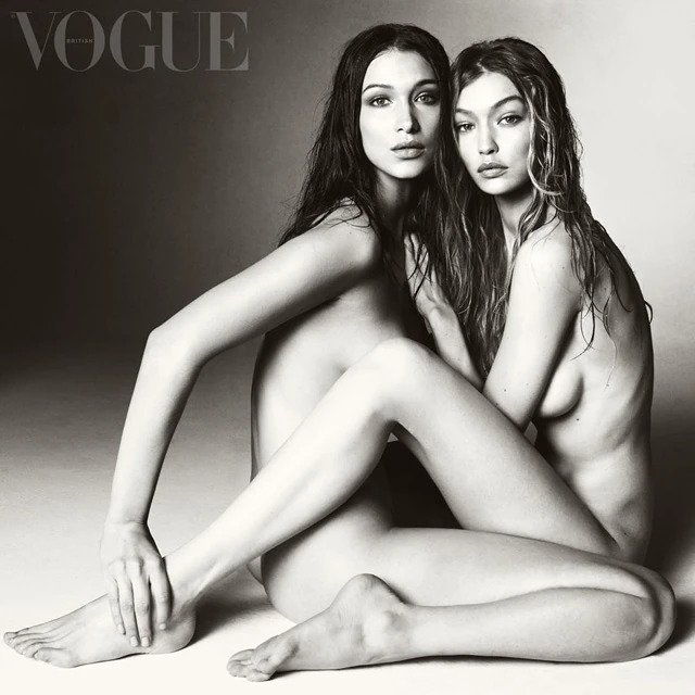 Bella és Gigi Hadid is kapott egy-egy külön címlapverziót, de természetesen a lapban vannak közös fotóik is. Ezek közül nyilván a legforróbb, amikor a két lány meztelenül bújik egymáshoz. Steven Meisel fotója felidézi a ´90-es évek egyik leghíresebb divatfotóját, amelyen a korszak legsikeresebb szupermodelljei bújtak így, egy szál semmiben egymáshoz.