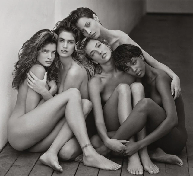Herb Ritts ikonikus fotóján Linda Evangelista, Christy Turlington, Naomi Campbell, Tatjana Patitz és Stephanie Seymour bújik egymáshoz meztelenül: