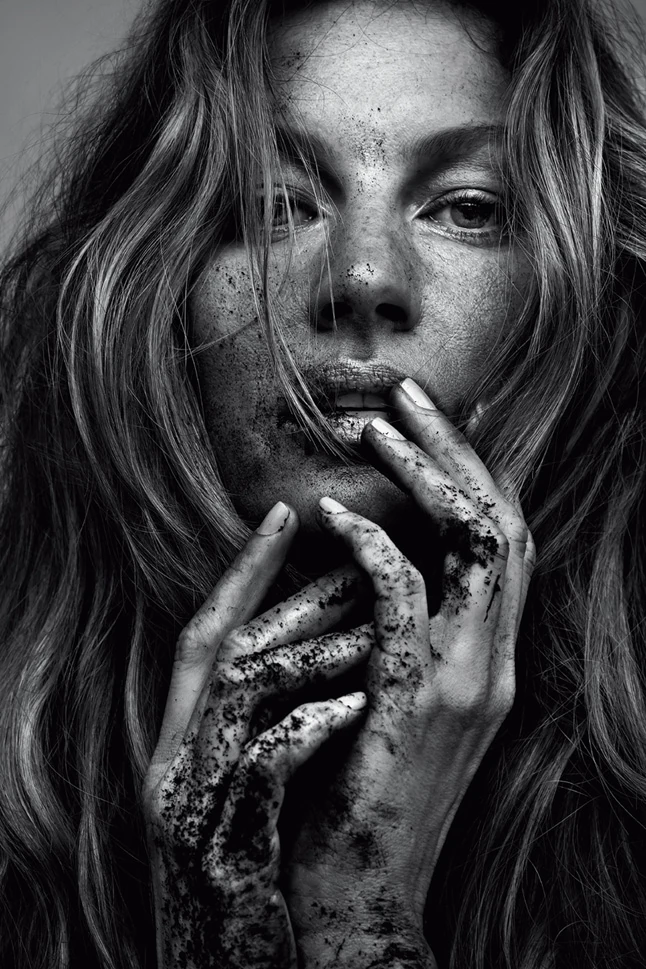 Az Inez és Vinoodh által készített fekete-fehér alkotás garantáltan egyike lesz azoknak a címlapoknak, melyeket még évek múlva is emlegetni fogunk, ahogy a hozzákészült fotósorozat is. Az egyiken Gisele épp tejben fürdik hercegnőként, a másikon pedig amazon módjára kócos hajjal, mocskos ábrázattal igézi tekintetével a nézőt, és egy harmadikon hajlékonyságát villantja meg meztelen keblekkel.