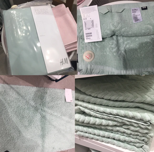 A másik utam az Aréna Plazába vezet az H&M Home üzletbe, ahol kinéztem a mentaszínű fürdőszoba kiegészítőket. Ezeket már jó előre lefotóztam, nézegettem, és igen, szerintem ez a "fürdőszobafelújítás" a télre. Szokatlan szín, de nekem nagyon tetszik most. Veszek a fürdőkád elé kilépőt, törölközőket és fürdőszobafüggönyt. Mindenből levonják a 20% kedvezményt a kuponomért cserébe.