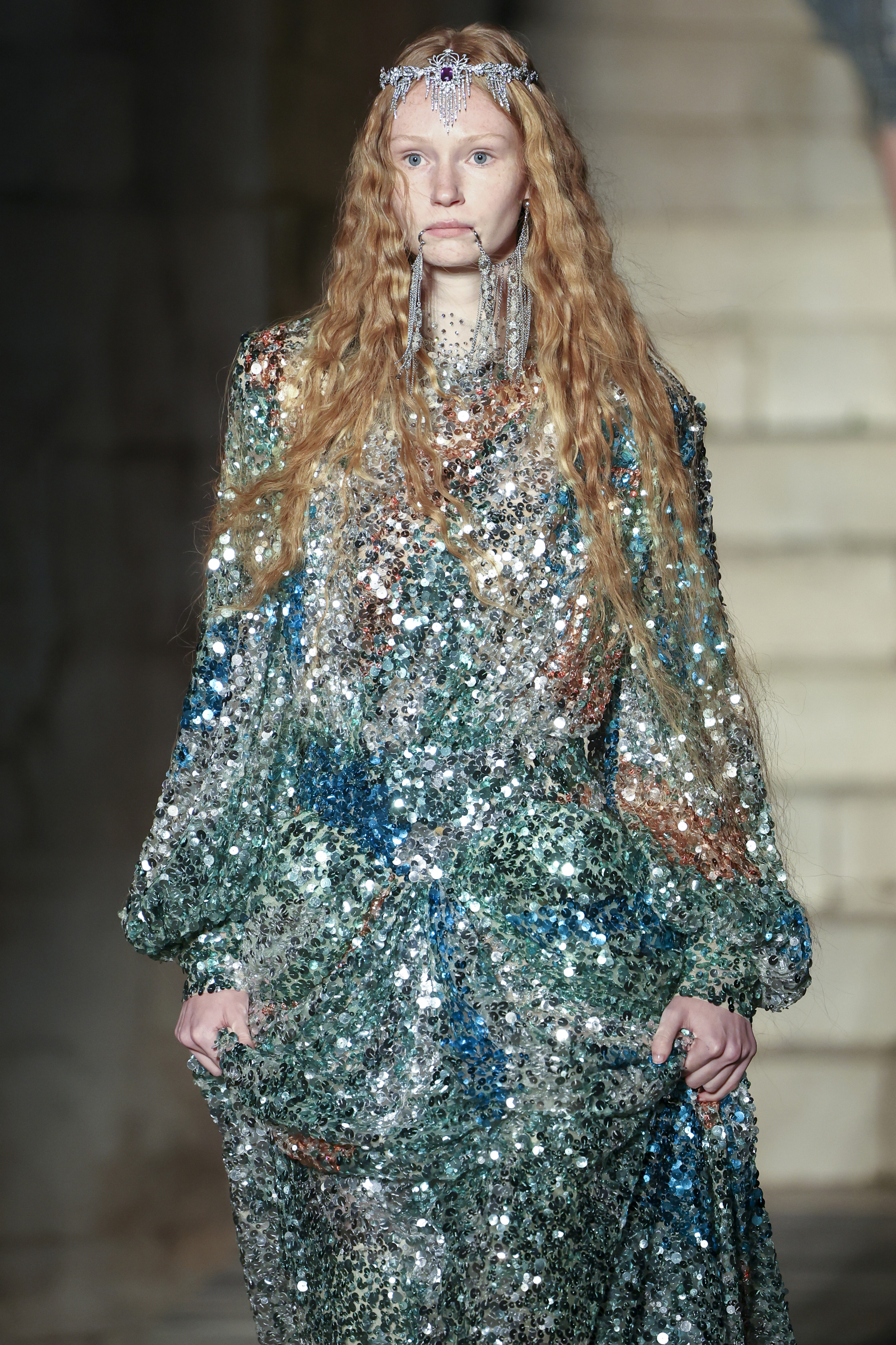 A múlt Gucci színei, eleganciája, logója és anyagai ismét a kifutóra kerültek egy jelen Gucci réteges, látványos és olykor sokat mutató verzióban. Mintákból, színekből, nyári csipkéből és statement szőrméből nem volt hiány, amihez csizma és ufónapszemüveg dukál. Ne felejtsünk el szót ejteni a fejdíszekről és a kesztyűkről sem. Az egész kollekció egy nagy szín - és anyag kavalkád a múltból a jelenbe, Gucci stílusban, amit Alessandro Michelén kívül kevesen tudnak ilyen látványosan megoldani.