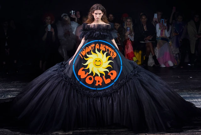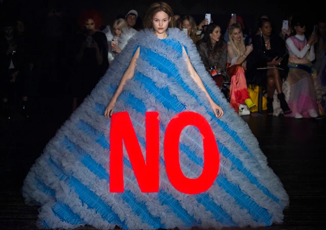 A kollekció egésze azt üzente, hogy a ruhád kimondja helyetted, amit félsz, nem akarnál kimondani. A játékos darabok odamondogatásai mellett "Ne fotózz", "Menj a pokolba", "Nem vagyok félénk, csak nem szeretlek", "B%&$d meg magad", az utolsó darabon, ami terebélyes gyászruhára hasonlított, mégis egy nagyon is befogadható üzenet áll: "Egy jobb világot szeretnék". Ki ne értene ezzel egyet!?