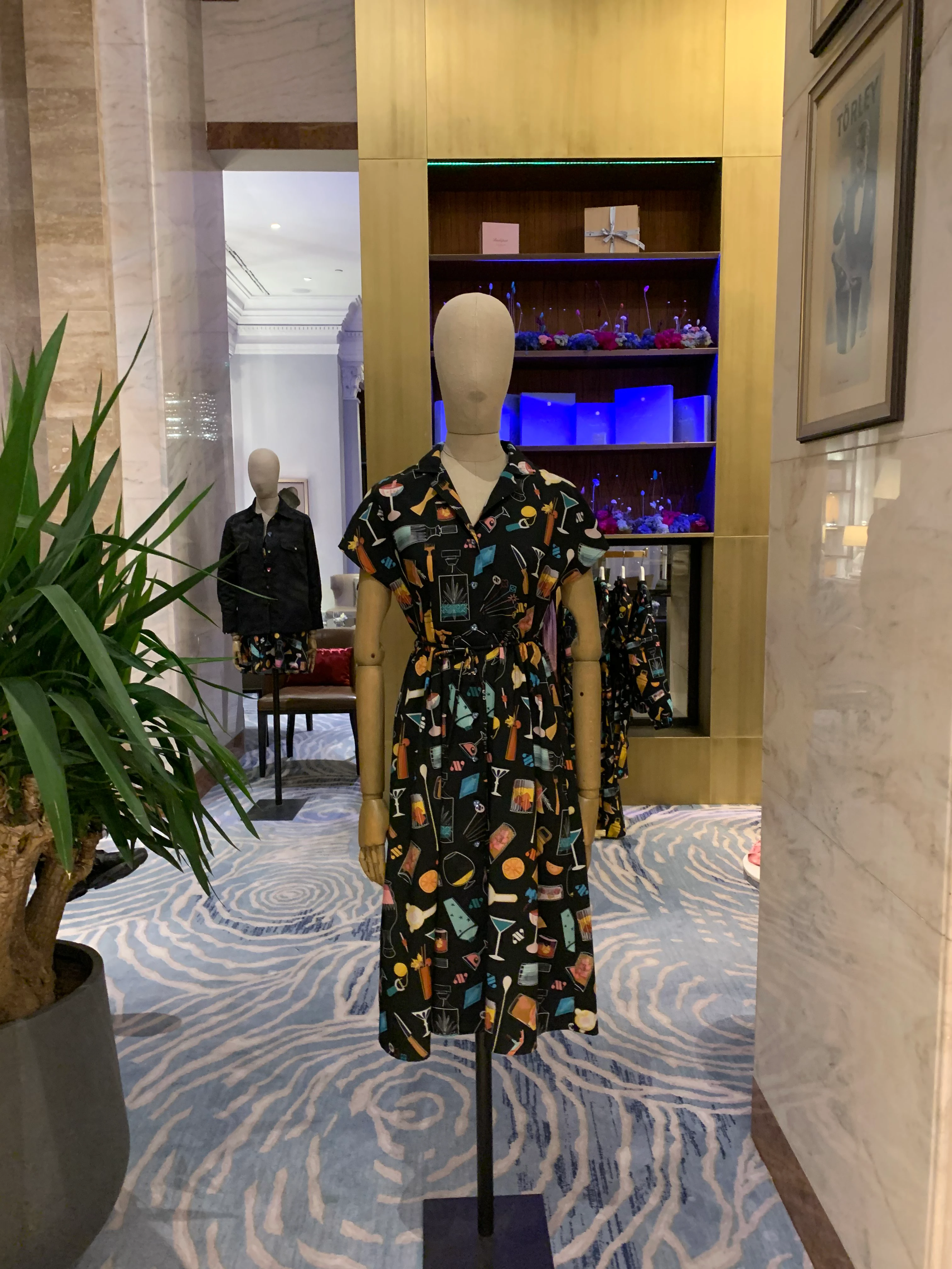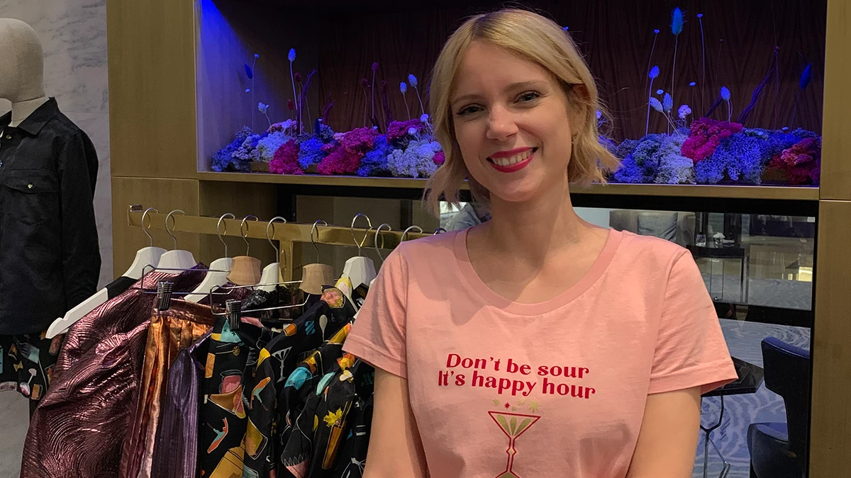 “A kollekció inspirációja a koktélok és az otthoni koktélfogyasztás. Azért juthatott ez eszembe, mert a karantén alatt senki nem mehetett sehová, ezért sokan otthon iszogattak és próbálgatták a bartenderséghez való tehetségüket. Nálam ez annyira berögzült, hogy van egy bárasztalom, ahol gyűjtöm a különleges italokat és koktélos kellékeket. A kollekció egyik printjét ez inspirálta, míg a másik - rózsaszín alapú tolie - mintát a rumkészítés története ihlette. Voltam 2-3 évvel ezelőtt Mauritiuson, ahol bepillanthattam a rumkészítés rejtelmeibe, innen jutott eszembe, hogy izgalmas lenne egy minta, ami ennek az italnak a történetébe enged bepillantást. A printre ugyan Barbados került rá, ahonnan a rum származik, de nagyon hasoló a hangulata. A kollekció mintáit én szoktam rajzolni, ez ebben a szezonban sem történt márként."