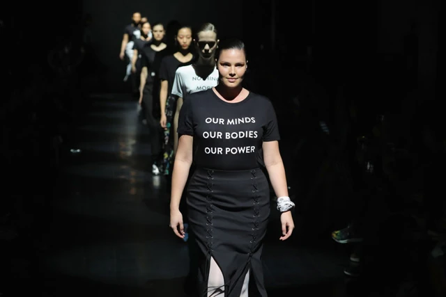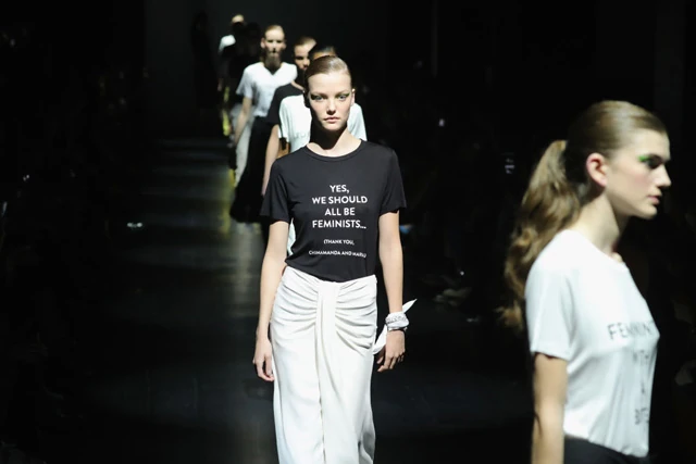 Minden tiszteletünk a divattervezőnek, aki saját maga egy olyan pólóban lépett a kifutóra meghajolni a show végén, mely a következő feliratot viselte: "ÍGY NÉZ KI EGY FEMINISTA".