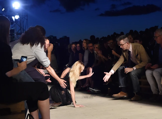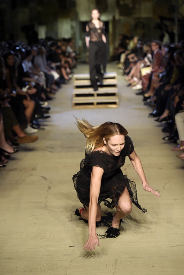 A divatház 2016-os tavasz-nyári kollekciójának bemutatóján ugyanis a szőke szépséggel megtörtént a modellek legborzasztóbb rémálma, elesett a kifutón.
