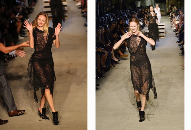 Kész katasztrófa volt a Givenchy ház bemutatója a New York-i divathéten. Nem egy, hanem két modell is elesett a kifutón.