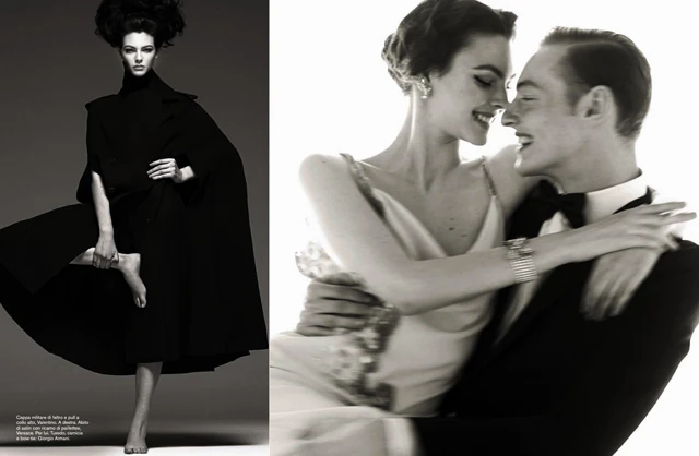 Idén augusztusban egészen káprázatos fotósorozattal ajándékozták meg az olvasóikat, no és mindenkit, aki érdeklődik a divatfotózás iránt. A kamera mögé a nagy elődök nyomában lépkedő Steven Meisel állt, aki egy lenyűgöző sorozatot készített, amiben régebbi, emlékezetes képeket gondolt újra. A kísérletben a társa az új olasz modell-istennő, Vittoria Ceretti volt. A szépséges lányról annyit feltétlenül érdemes tudni, hogy két éve a Dolce & Gabbana fedezte fel, és azóta is ragaszkodnak hozzá, igaz más márkák is epekednek érte. Az erőteljes kisugárzású, karakteres arcú, de nagyon törékeny Vittoria megtestesíti azt a kiismerhetetlen nőtípust, aki egyszerre anya és csábító, szűzies, de démoni, egyszóval a nagybetűs olasz nőt.