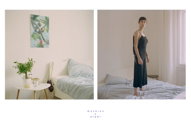 Zalkai Bálint alias Alpár neve ismerősen csenghet az elektronikus zene kedvelőinek, hiszen a zenész a Silf duó tagjaként tevékenykedik. Alpár a véletlenszerűség folyamatainak segítségével ír szintetizátoros zenét, a Müskinn új kollekciója pedig ugyanezt a módszert követi – a lányok Alpár öt szólamát az új táskák öt különböző anyagába ültették át.