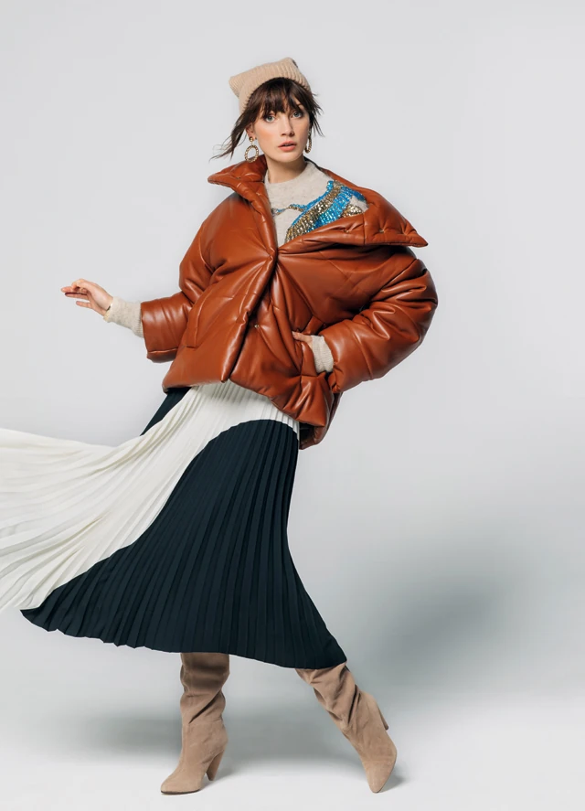 A meleg dzseki kiválasztásakor a funkció gyakran felülkerekedik a stíluson. De ez a barna darab tökéletesen fog mutatni nőies darabokkal is és még fázni sem fogsz benne.