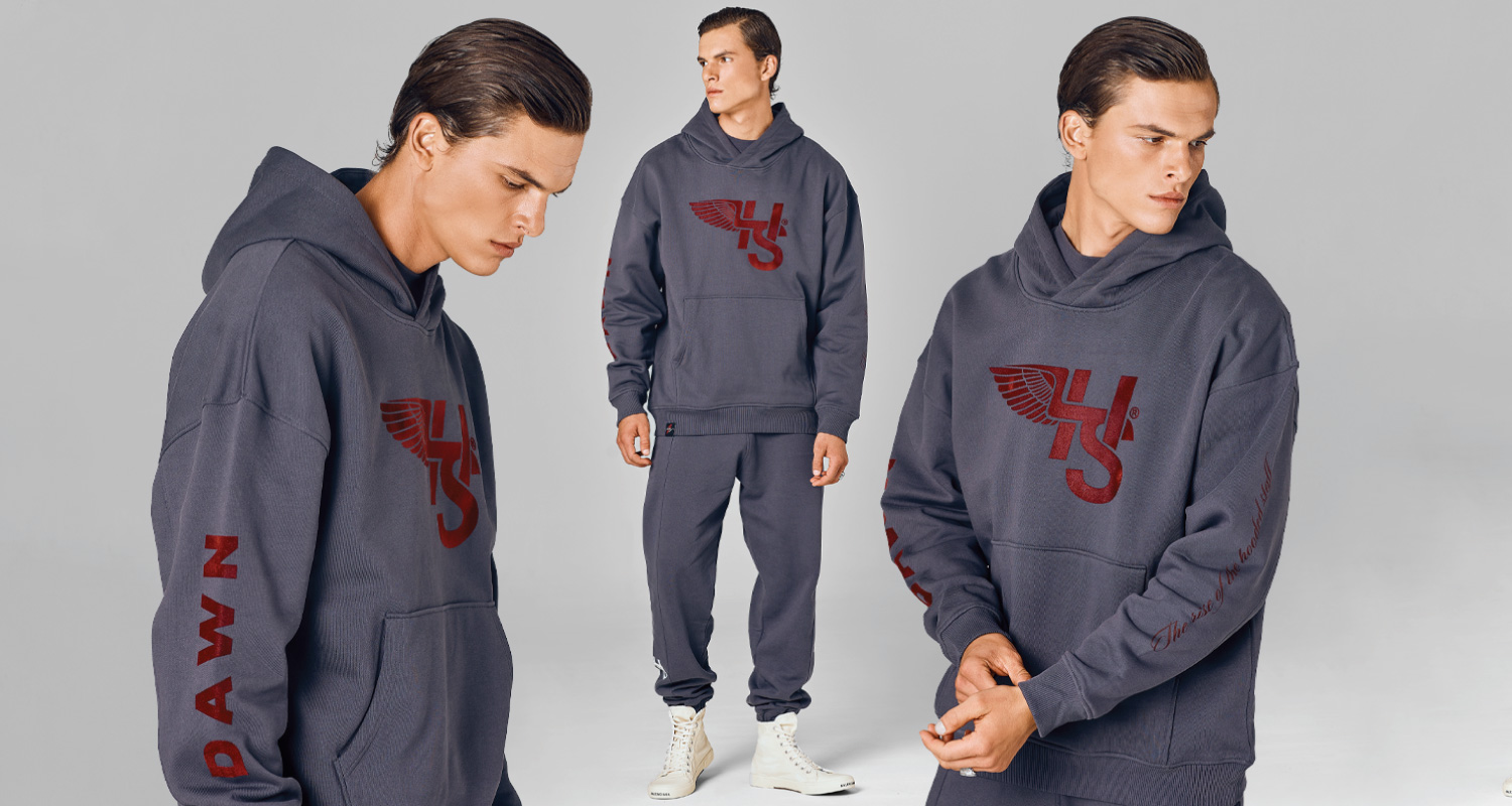 A már jól ismert hooded staff. pólók, sweatshirt-ök, kapucnis pulóverek és melegítőnadrágok után a kollekció nőiesebb darabokkal és kabátokkal bővült. A hölgyek számára elkészült a DAWN Dress és a DAWN Body is, a “hoodie” termékek pedig új 3D guminyomással és flock printtel készülnek, hogy még egyedibbek legyenek. „Maga a felemelkedés metaforája inspirálta az új HS WING logót, ami szintén ebben a kollekcióban debütál. Megjelennek még az új színeink is, mint a Maroon és a Chocolate, de a kollekció színei közé tartoznak a Moon (szürke), Midnight (fekete alap, fehér felirat), Pitch (fekete alap, fekete felirat), Toffee (homokszín), valamint a Cloud (felhő, azaz mosott fehér) is.” – mondja a hooded staff .csapata.