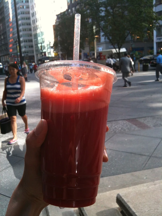 Szóval tavaly nyáron azt vettem észre, hogy 70-80%-át az ételeimnek friss növények tették ki, a reggeli zabpelyhemet felváltotta a nyers gyümölcs, és az ebédemet is és a vacsorámat is... Vagy valamiylen zöldség, amit csak meg kell mosni és már lehet is enni. Illetve sok sok olajos mag, kesu, mogyoró, pisztácia, dió stb. Először nem is nagyon foglalkoztam vele, de egyre többet hallottam róla, elkezdtem olvasni-olvasni, információt gyűjteni, egyáltalán nem erőszakoltam magamra a nyersevést, de minél hosszabb idő telt el a főtt étkezéseim közt, annál jobban éreztem, hogy nyersen jobban funkcionálok. New Yorkban pedig teljesen kinyílt a nyersvilág, ott rengeteg étterem van már, amik kifejezetten nyers ételekre specializálódtak.
