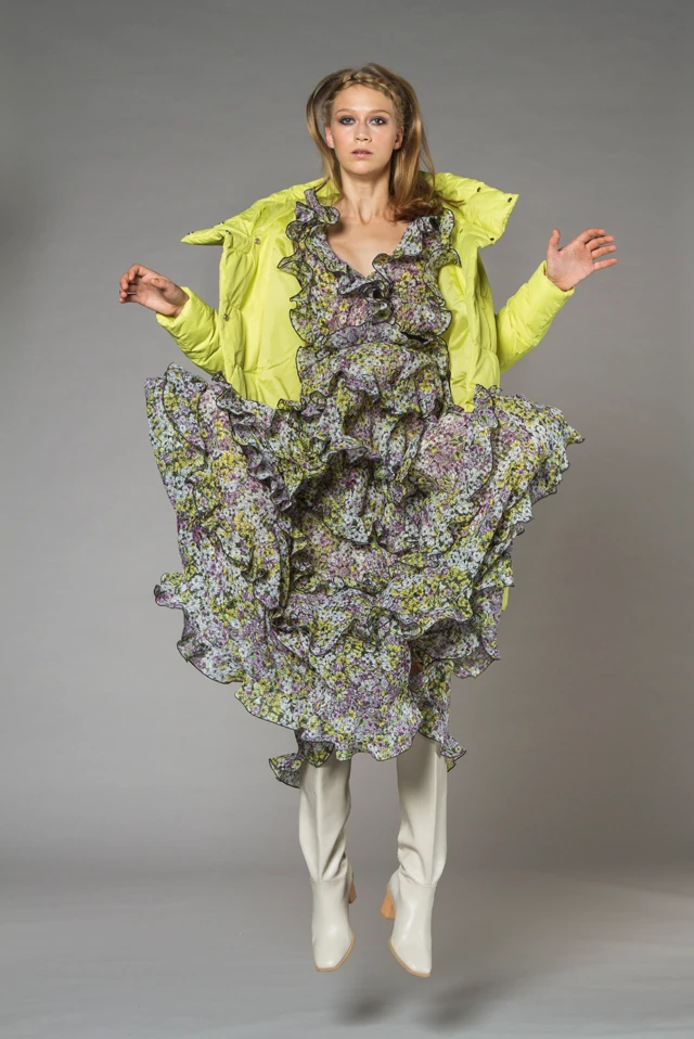Csempészd be a tavasz virágait a téli ruhatáradba! Rétegezd egy gyapjúgarbóval és pehelykabáttal a hűvösebb napokon.