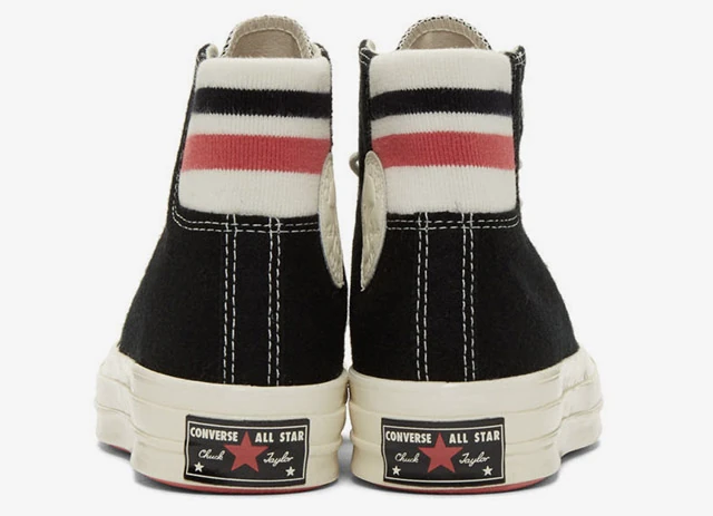 A mostani magas szárú darabok igazán retrós hatást keltenek, amit a kötött sarokrész mintájával sikerült elérni. Nagyon meglepő ez a zokniszerű betoldás, de ahogy egyre tovább nézegetjük, egyre jobban tetszik. A Converse Chuck 70 darabok már kaphatók néhány webáruházban.