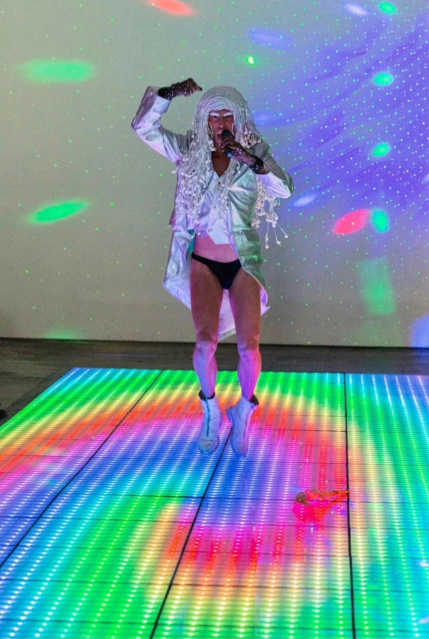 A látványos show-műsornak két énekes fellépője is volt, Jordan Brodie angyalszárnyakkal, hálós topban és flitteres fecskében villantotta meg hangi adottságait, Bar Bionic pedig feltűnő zsinórokat viselt a hajában. De láthattunk rögtönzött (?) táncprodukciót is hatalmas láblendítésekkel és bravúros földön landolós forgásokkal - mindezt persze magas sarkúban előadva.