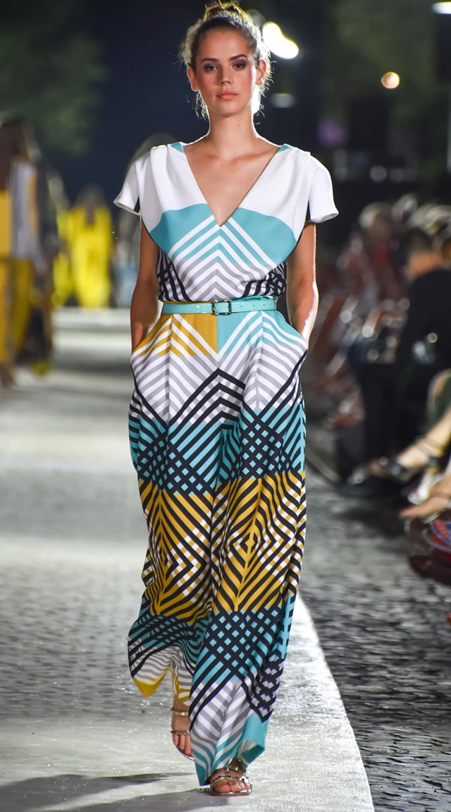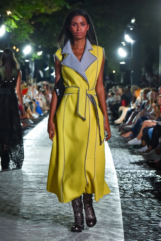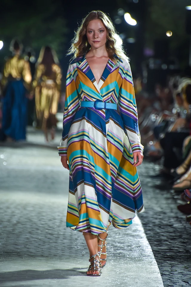 Finom érzelemgazdagság ölt testet a nagyléptékű mintákban, a chevronban, a pöttyökben, a csíkokban, a szövött foltokban, a fanyar színekben, valamint a szofisztikált anyagokban, a mondén organzában, a légies csipkében és a rafináltan kétarcú kasmírban. A fanyar sárga, a ködfátyolos rózsaszín, az acélos kékek, a fényes és matt variációban is felbukkantak. Akárcsak a kövekre hullott az esőn a felcsillanó a nap.