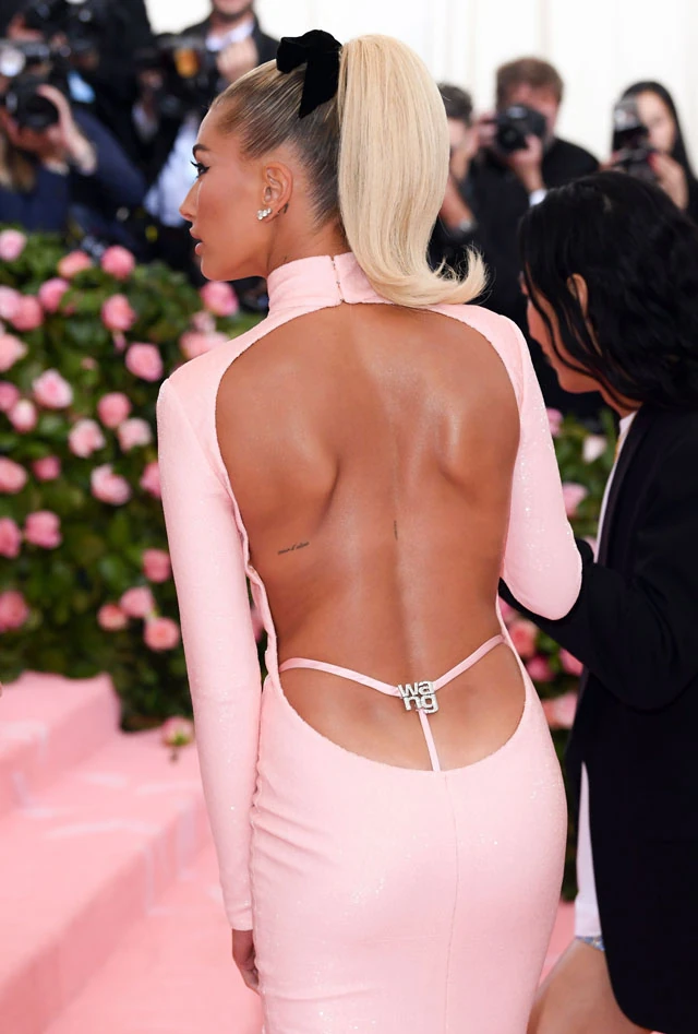 De nem Bella Hadid volt az egyetlen, akin viszontláthattuk ezt a trendet, hiszen Hailey Bieber a vörös szőnyegen villantotta meg tangáját, amiről az Alexander Wang logó sem hiányozhatott.