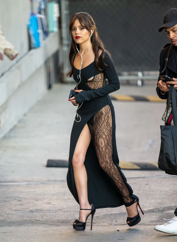 Jimmy Kimmel műsorába az ausztrál Dion Lee tervező ruhájában és Louboutins cipőben érkezett. Jenna Ortega stylistja, Enrique Melendez igazi gót királynőt varázsolt a színésznőből. Szerintünk Wednesday is ölni tudna ezért a dögös ruháért!