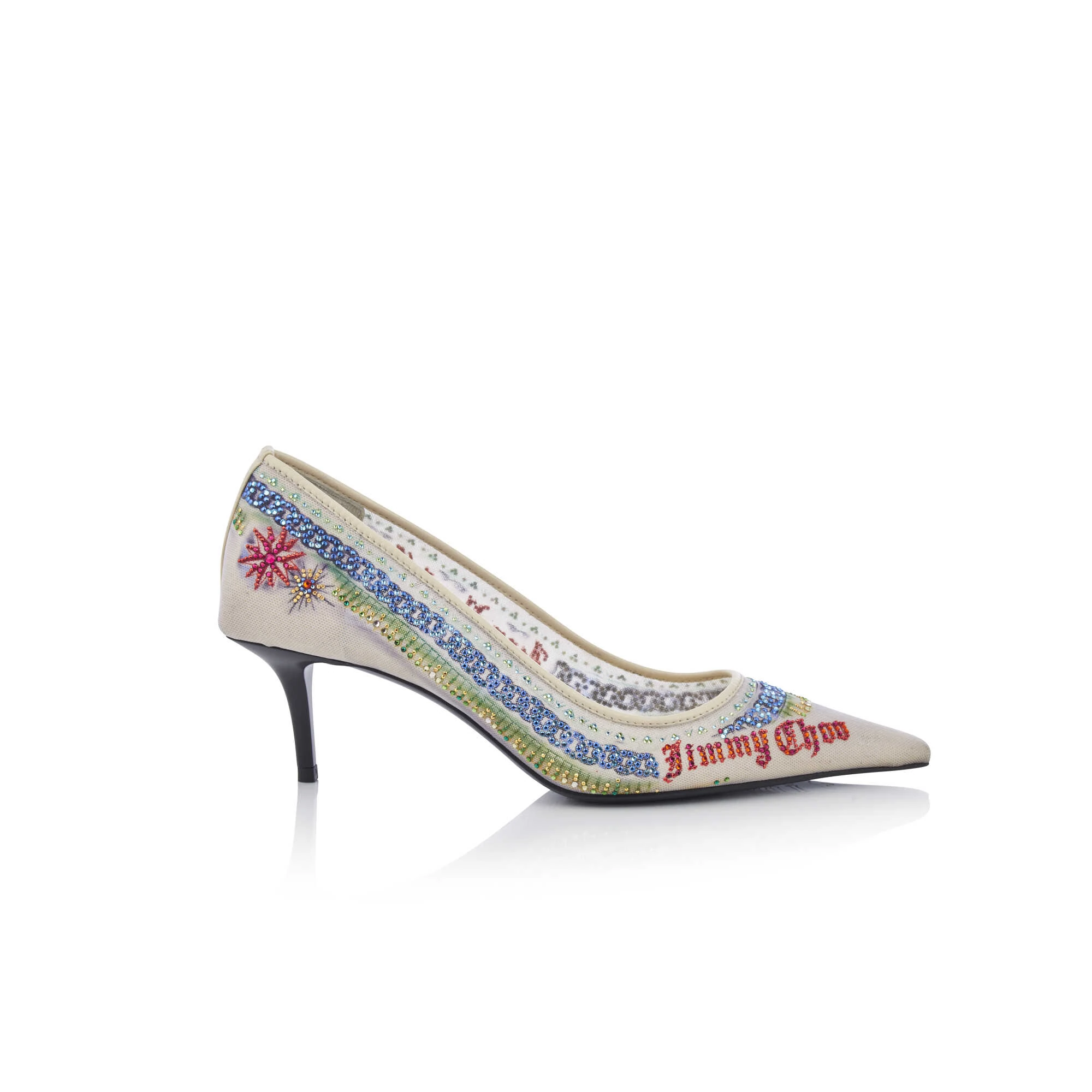 A cipő hosszúkás orrával klasszikus Jimmy Choo sziluett, amiben benne van a Gaultier játékossága, szellemessége. A cipő viselője látszólag a levegőben jár. A csoda tehát megszületett!